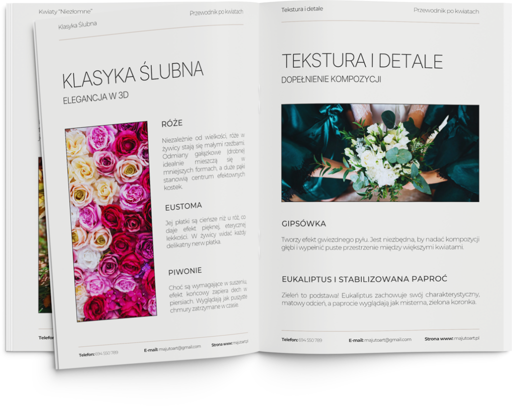 Pobierz bezpłatnego ebooka Zachowaj swój bukiet ślubny na zawsze Pobierz bezpłatny przewodnik i dowiedz się, które kwiaty przetrwają w żywicy, a które mogą stracić kolor i formę. Jakie kwiaty wyglądają najlepiej po utrwaleniu?Czego unikać, żeby nie zniszczyć bukietu?Jak przygotować bukiet po ślubie (krok po kroku)?