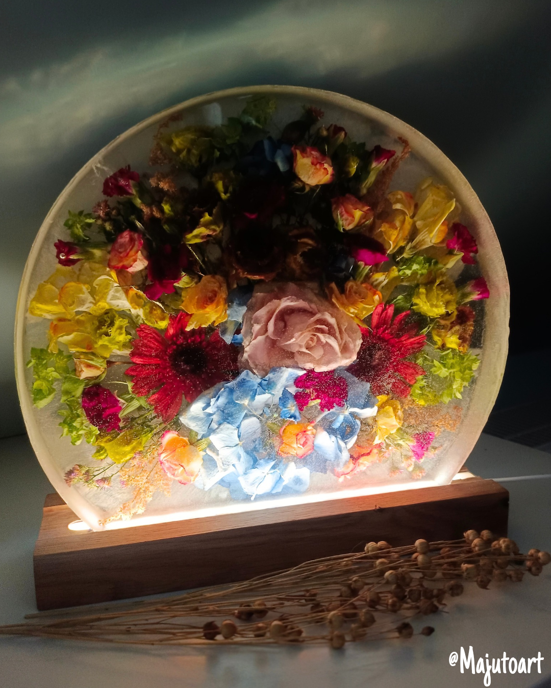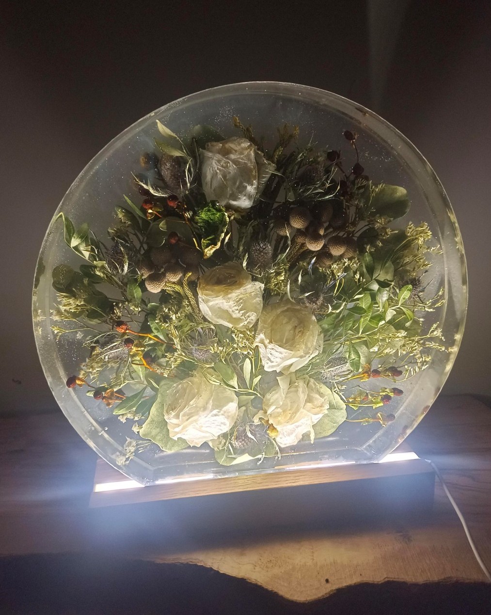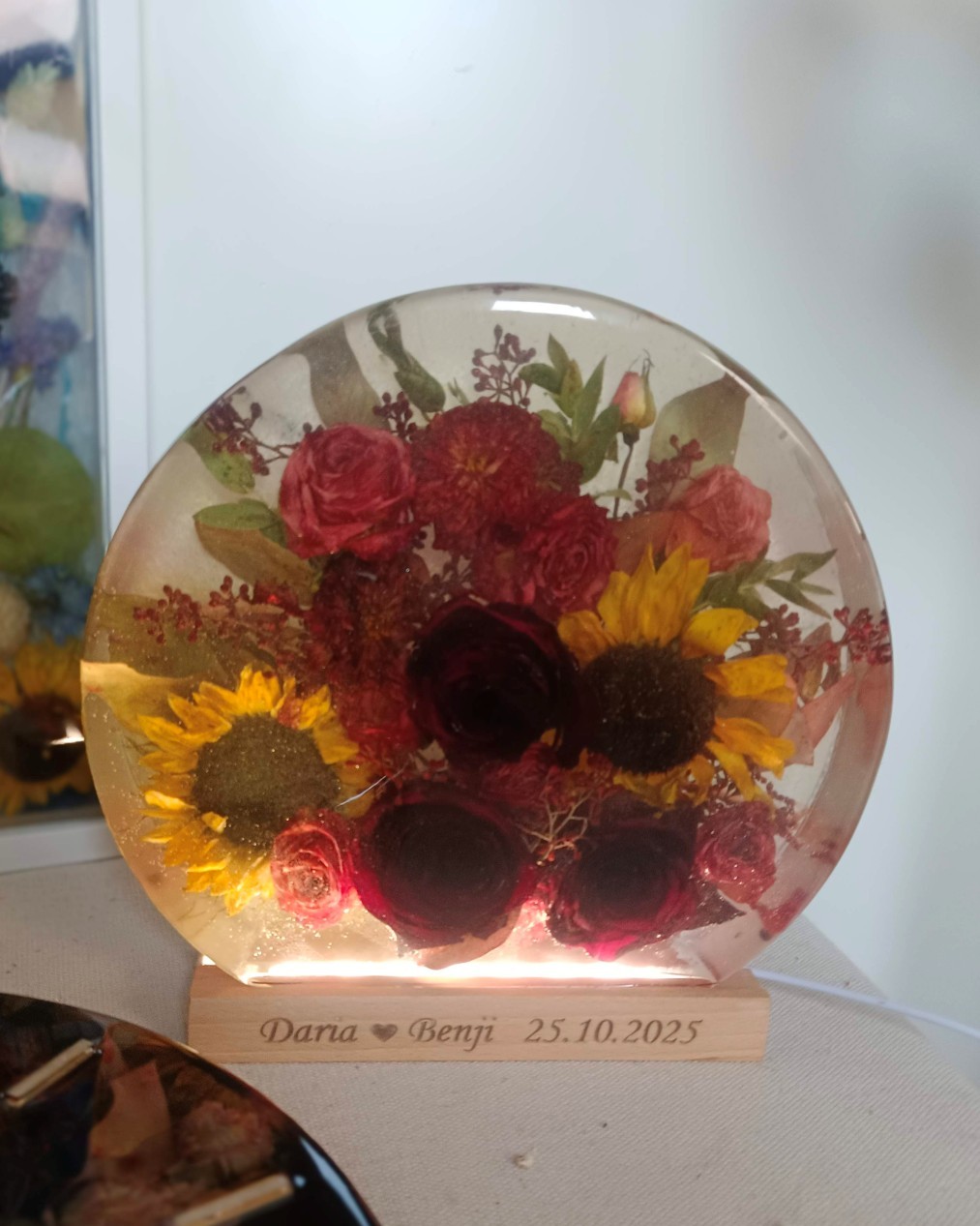 Monumentalna bryła o średnicy 25 cm, stworzona, by pomieścić większe fragmenty bukietu. Głęboka forma pozwala na zachowanie naturalnego kształtu róż czy piwonii. Zasilana kablem USB.