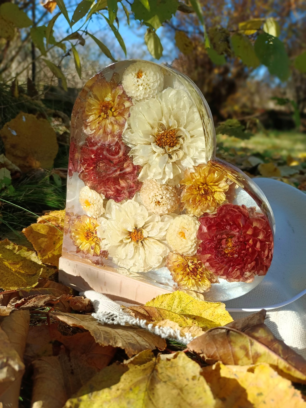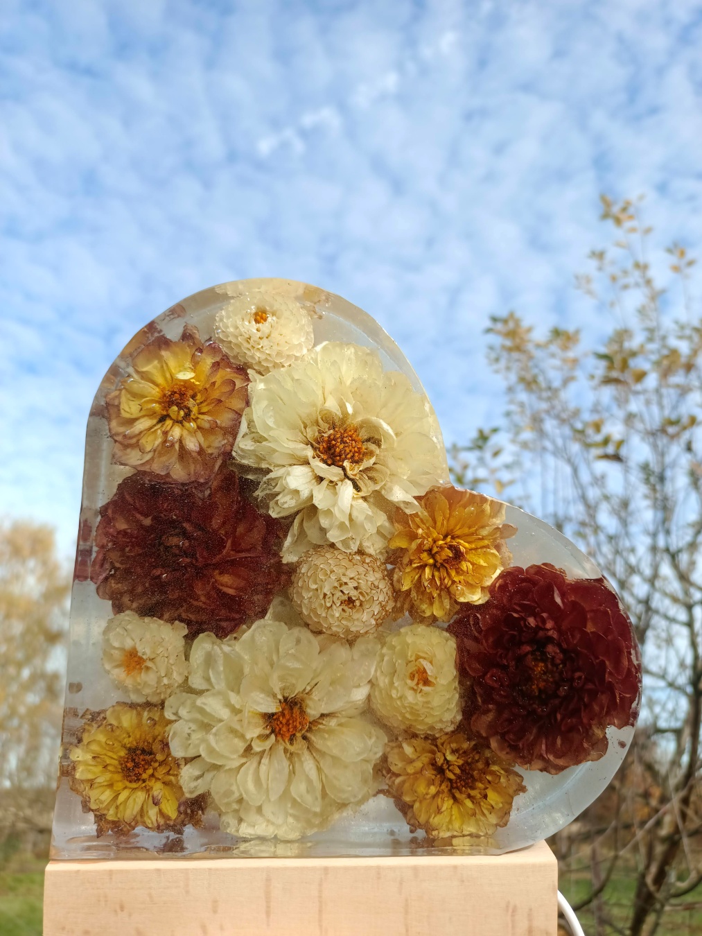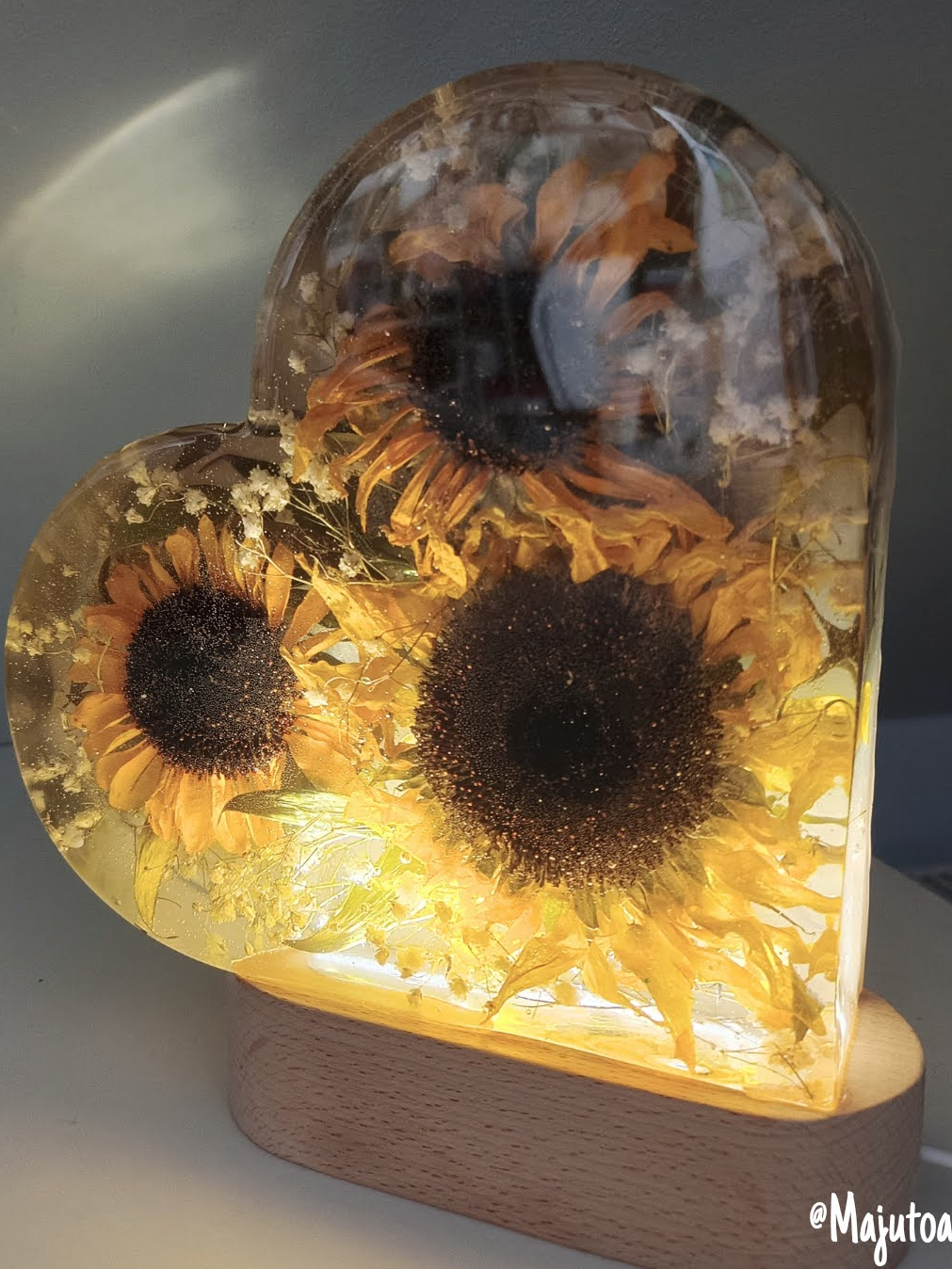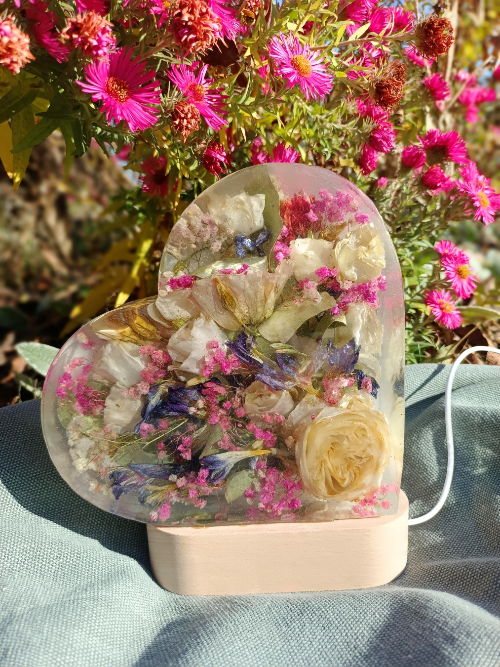 Romantyczna, głęboka forma, w której zamykamy kwiaty przestrzenne. Symbol Waszej miłości o wysokości 20 cm, podświetlony bazą LED (USB).