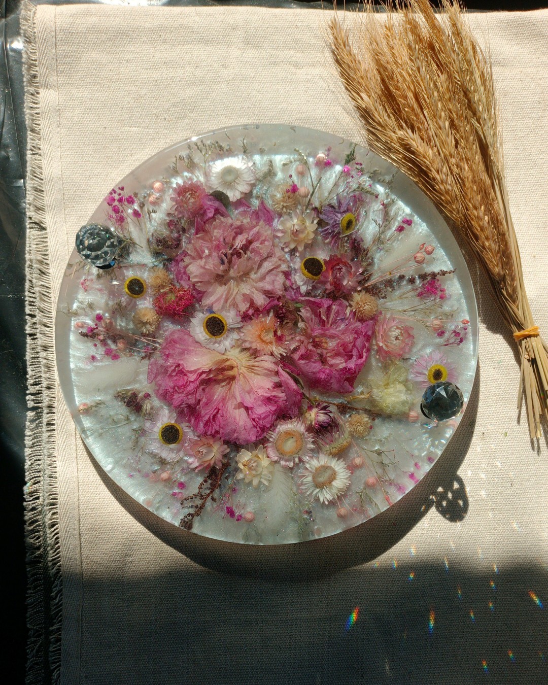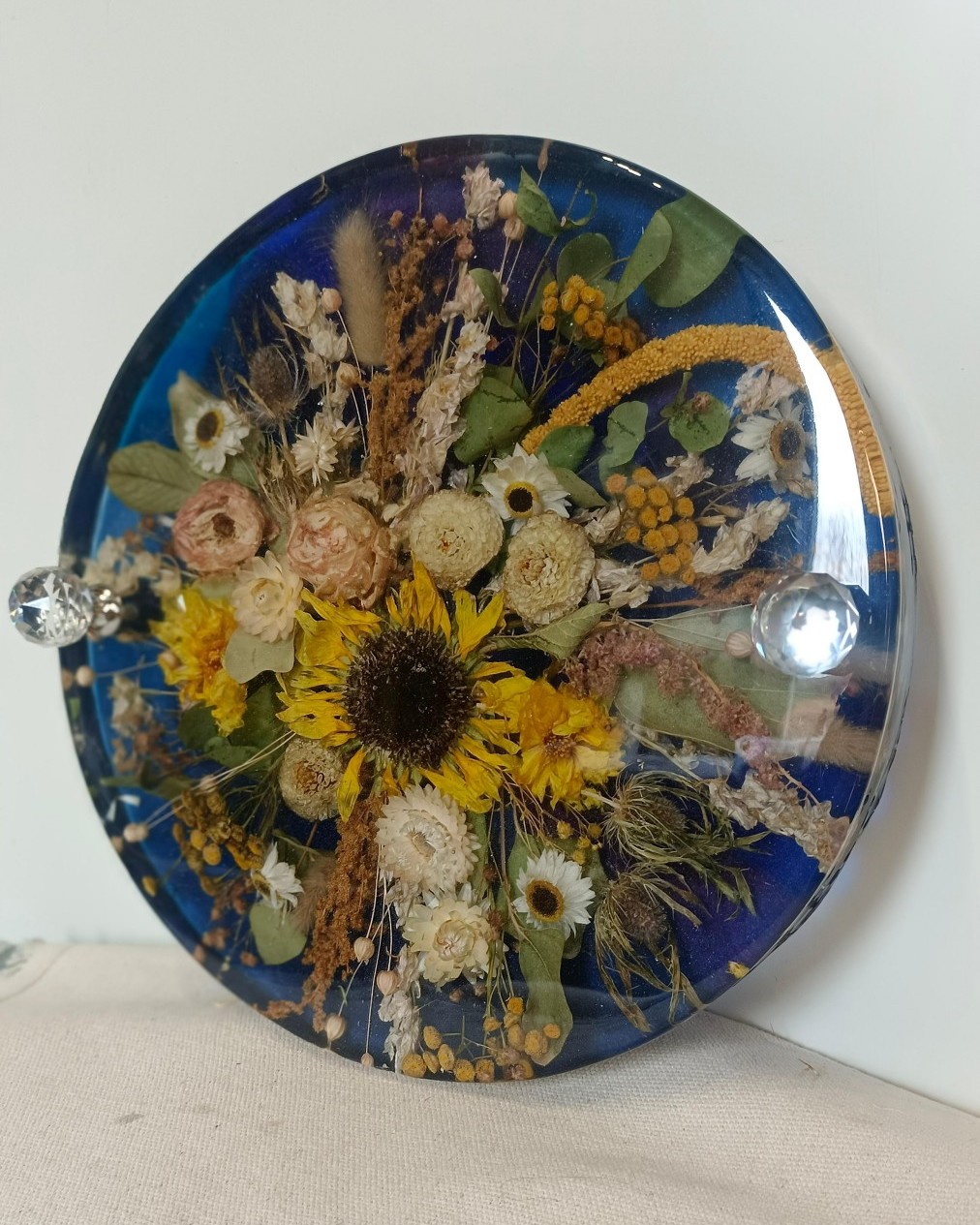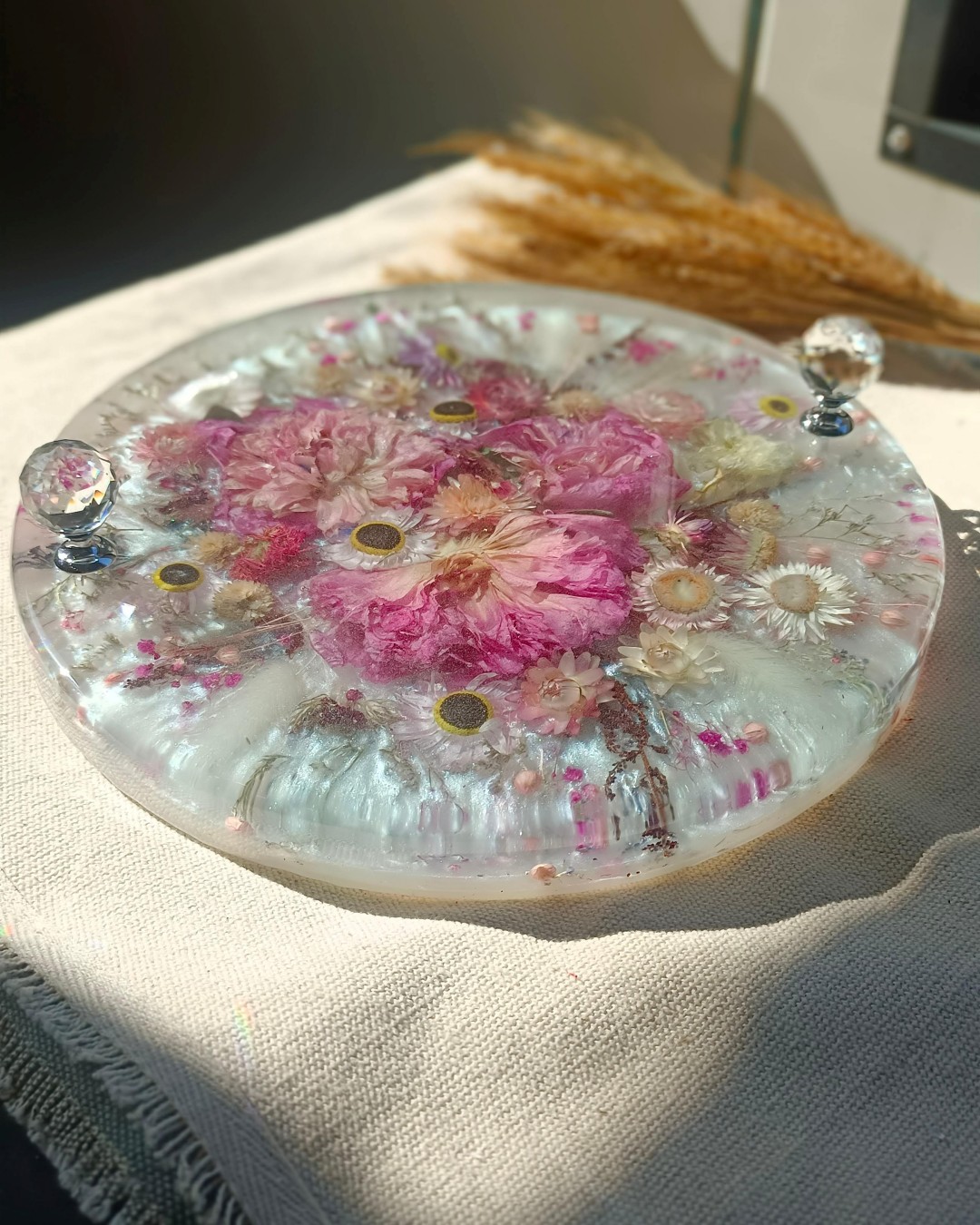 Elegancka taca z kryształowym wykończeniem. Średnica 28-30 cm.
